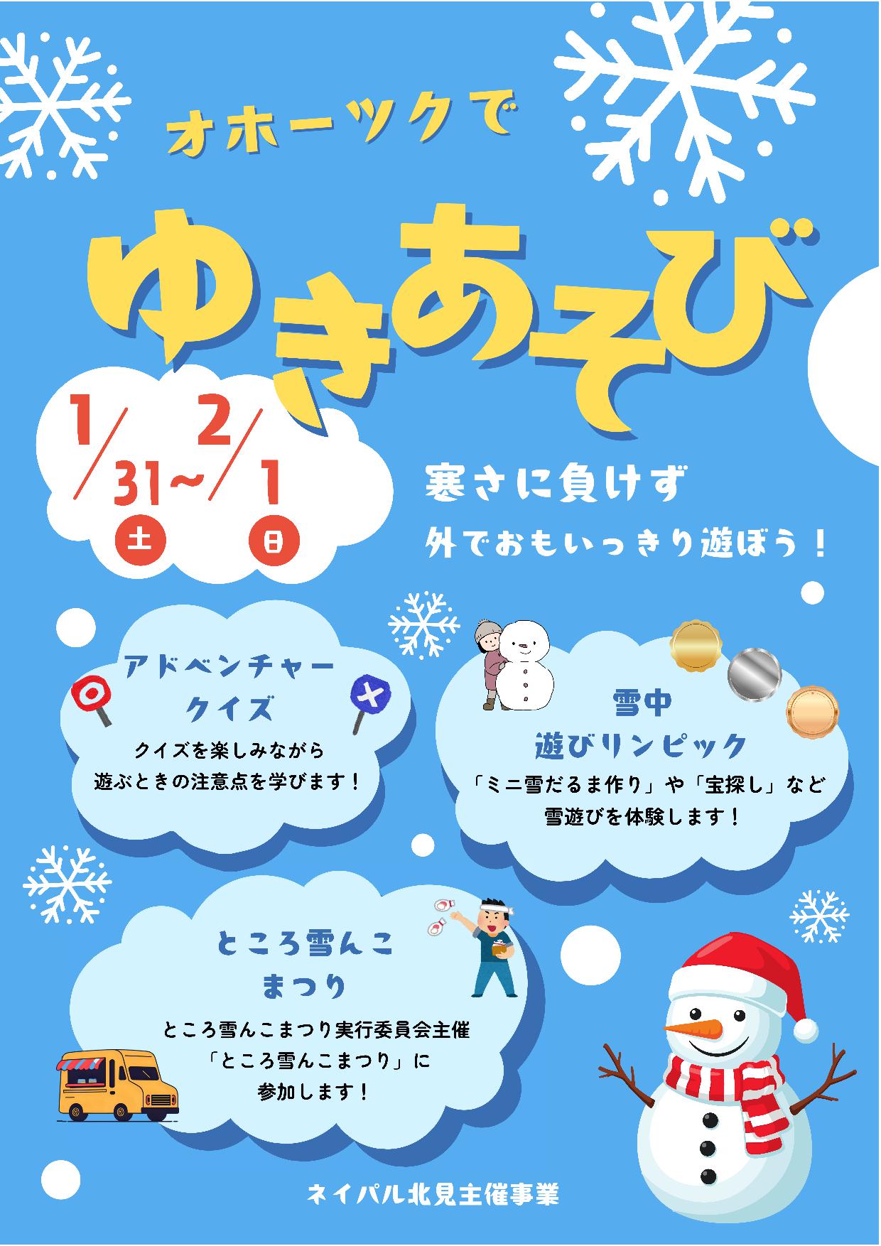- 「オホーツクで雪遊び」を公開しました。詳細につきましては、開催要項をご確認ください。