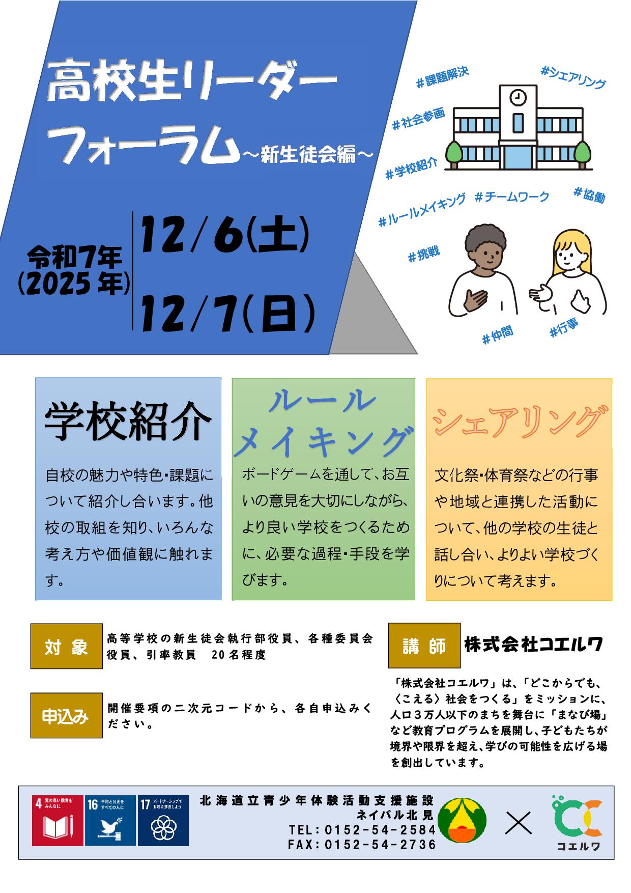 「高校生リーダーフォーラム~新生徒会編~」参加者募集