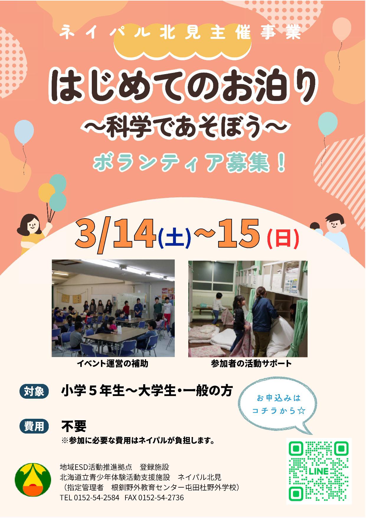 「はじめてのお泊り~科学であそぼう~」ボランティア募集